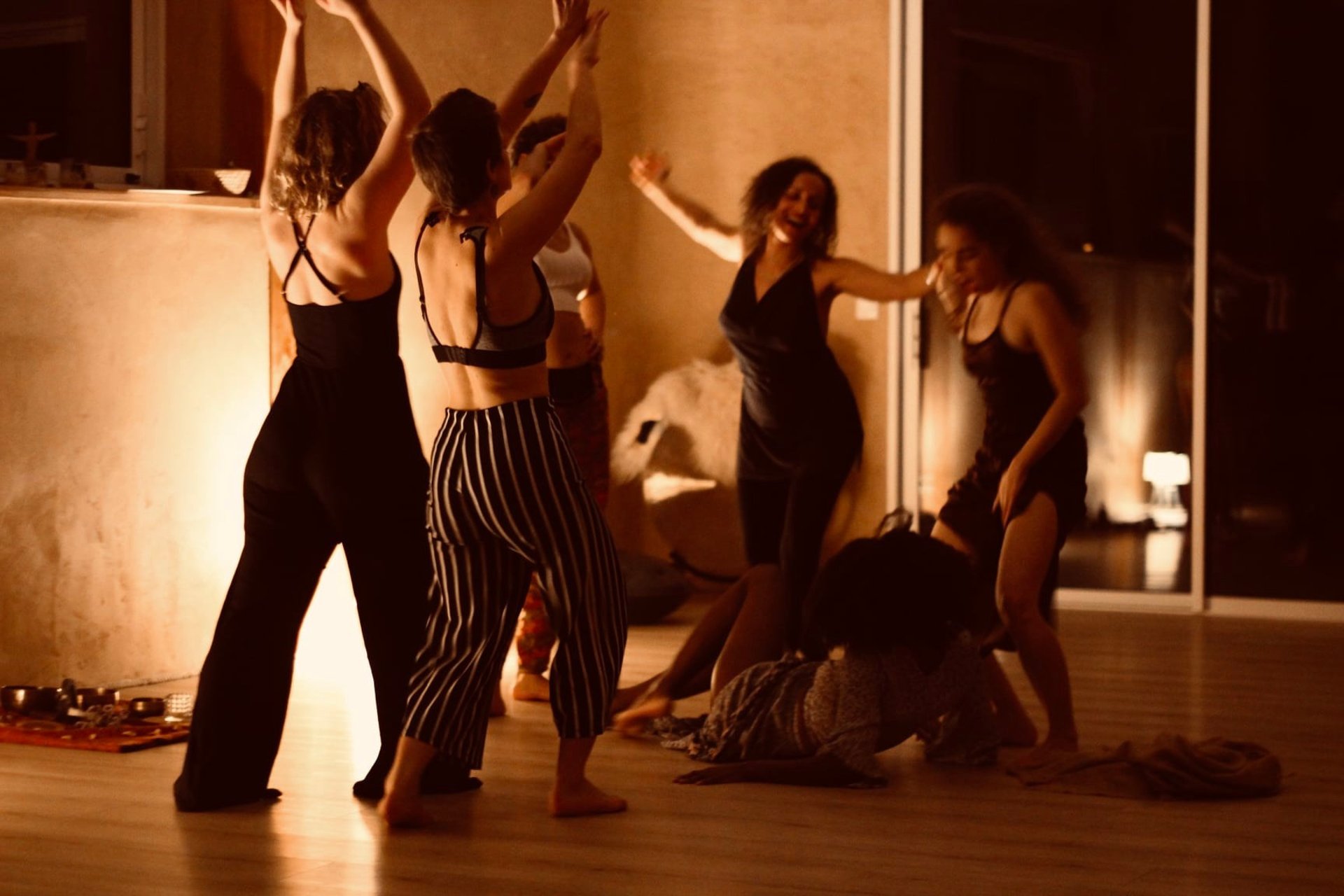 Playfight, théâtre spontané, circlesong, clown/BDSM, bodypainting, yoga, shibari, écriture érotique, massage russe, olympiades délurées, soin rebozo, cercle de parole en non mixitée, contact impro, tango.