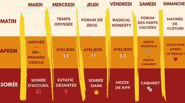 ☀️ Je veux une transformation profonde, pas juste une bulle cool où j'oublie mes soucis. Une continuité dans les rencontres — retrouver les copain·es de l'Odyssée, celles que je connais ou pas encore.